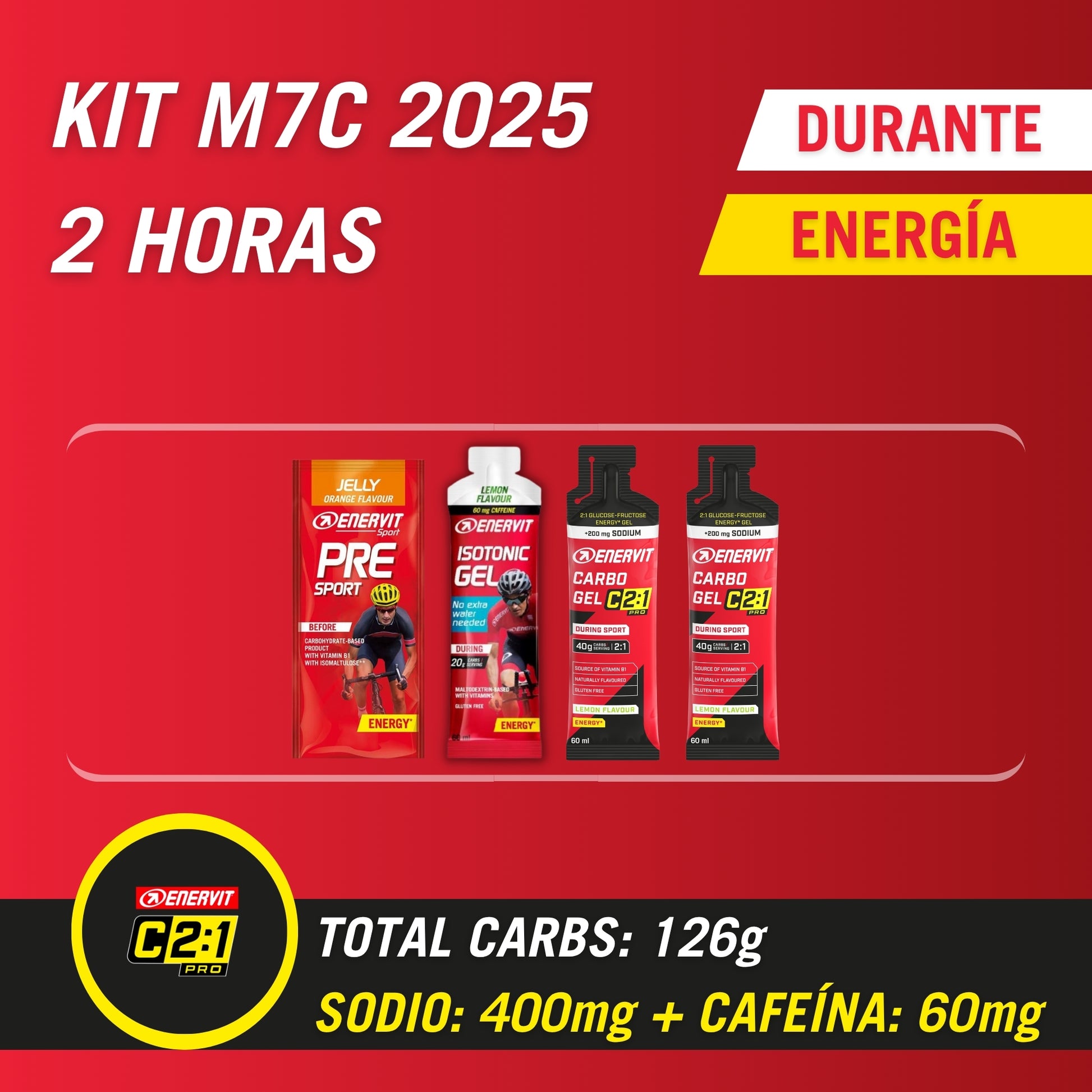 - 2 CARBO GEL C2:1PRO + SODIO (Carbs: 40g) Mezcla de Carbohidratos en fórmula 2:1 (Glucosa: Fructosa) que te permitirá mantener la misma ''composición'' del Isocarb, dándole la oportunidad a tu cuerpo de asimilar una alta cantidad de CH, es decir: más energía disponible. Adicionalmente, su aporte de sodio te ayudará a evitar la deshidratación.